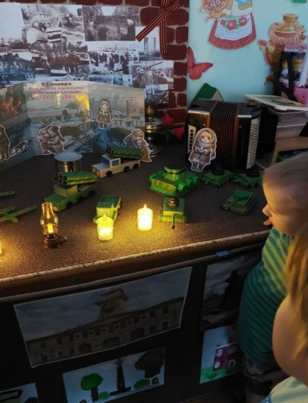 В годы ВОВ были очень тяжёлые времена. Особенно они пришлись на город- герой Ленинград, когда был ужасный голод, холод и бомбежки - это была Блокада. Ребята 6 группы узнали об этом нелёгком времени, переживали за людей, которые держали оборону 900 дней и одержали победу над фашизмом. И в память о них сделали свечу памяти.